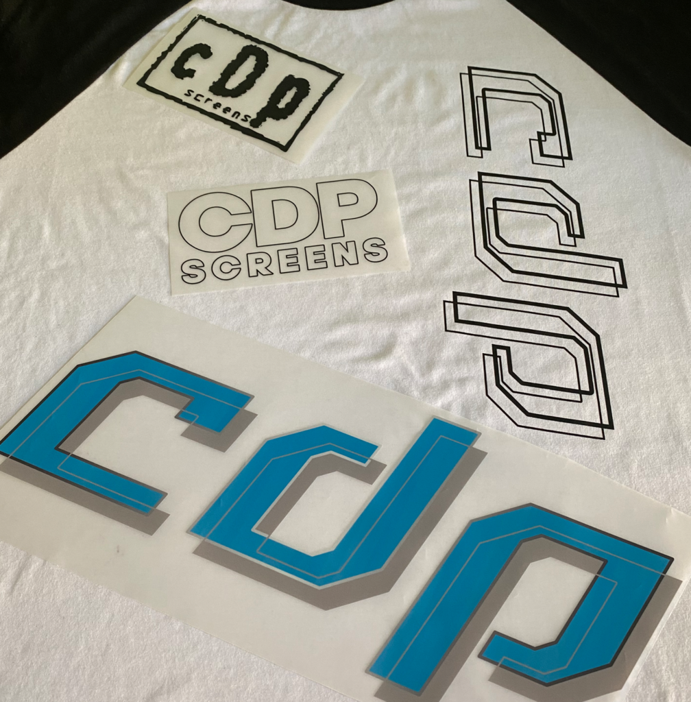 Heat transfers are applied using a heat press, with the artwork first printed onto a film.